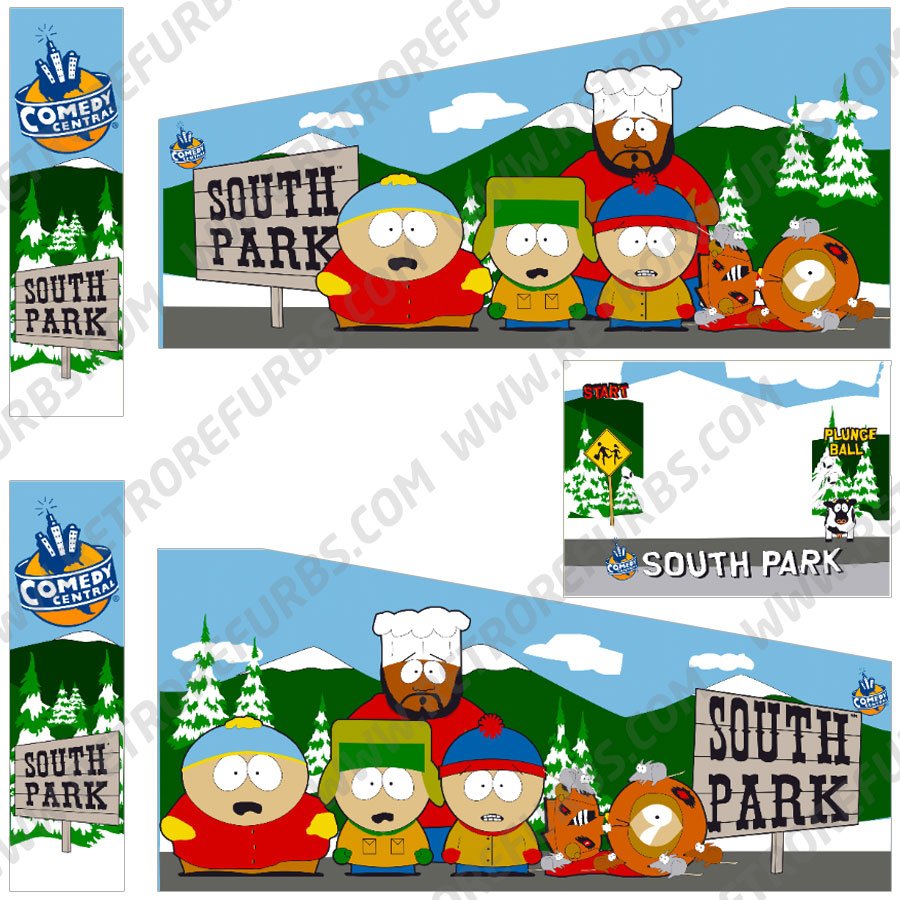 Premium quality cabinet decals for SEGA South Park pinball machine. This 5 piece set of cabinet decals come in a beautiful satin finish, printed with UV stable inks protection to prevent color fading. UV printing provided vibrant colors which will not fade. Your South Park flipper will look as good as the day it rolled off the production line.